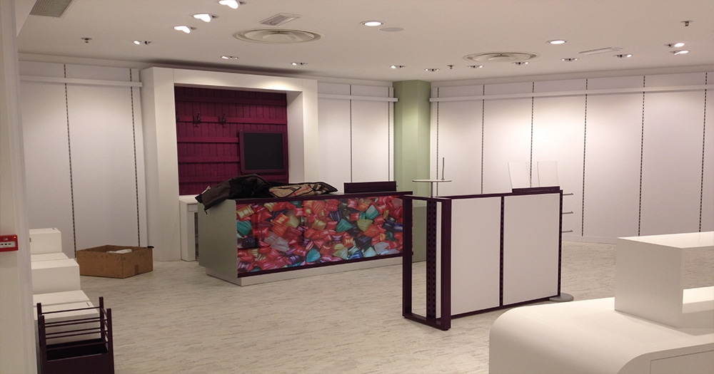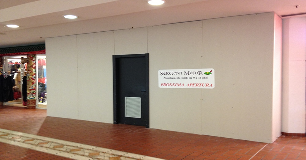 Allestimento unità di vendita presso Centri Commerciali e Negozi del Nord Italia, a supporto dello sviluppo reti CELIO*, SERGENT MAJOR e altri.